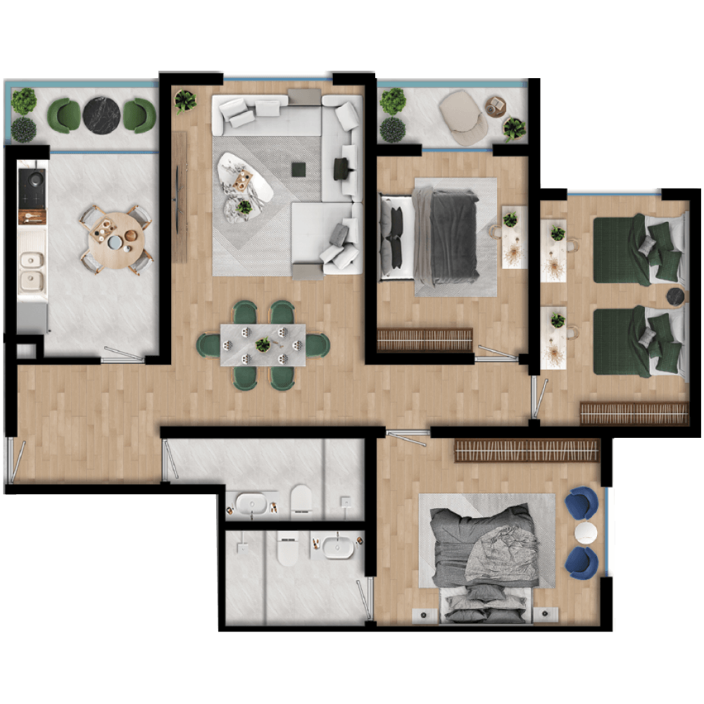 وحدات سكنية واسعة صُممت لتناسب الحياة العائلية، مع توزيع ذكي للغرف يوفّر الراحة والخصوصية.